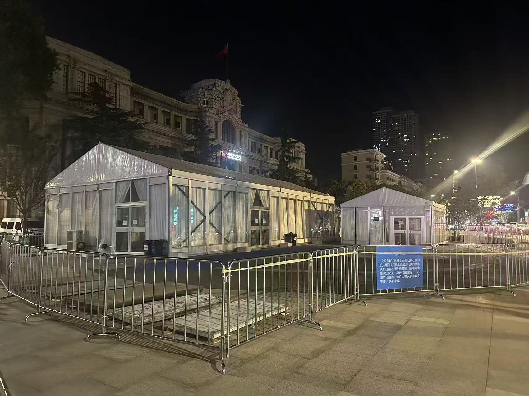 华之熠提供的篷房款式丰富,能够满足不同场景的审美和功能需求。尖顶篷房以其独特的造型和良好的排水性能,特别适合多雨季节的户外活动;人字顶篷房则凭借简洁大方的外观和稳定的结构,成为商业展览和会议的理想选择;欧式篷房以其优雅的线条和典雅的风格,常被用于高端酒会、婚礼等场合。此外,白色篷房纯净简约,红色篷房喜庆热烈,透明篷房通透明亮,玻璃幕墙篷房现代感十足,蓝色篷房沉稳大气,每一种颜色和材质的选择都能为活动增添独特的氛围。无论是需要营造庄重感的政府会议,还是追求时尚感的品牌发布会,华之熠都能提供与之匹配的篷房解决方案。